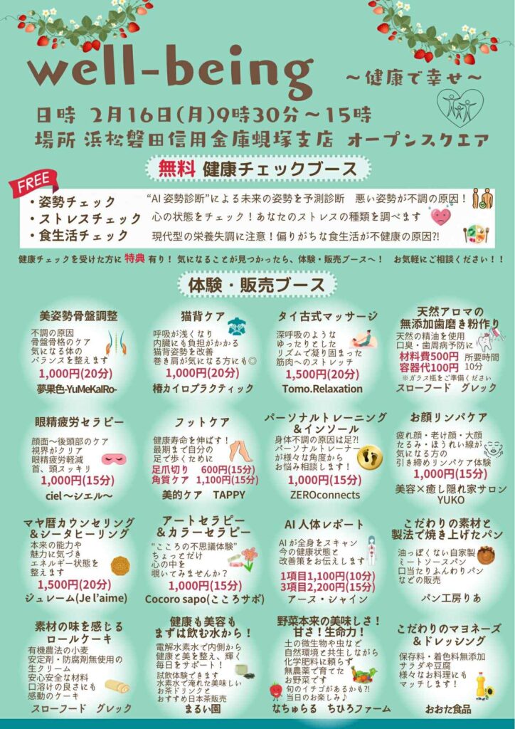 2月16日(月)9時30分〜15時、浜松磐田信用金庫 蜆塚支店オープンスクエアにて開催される
